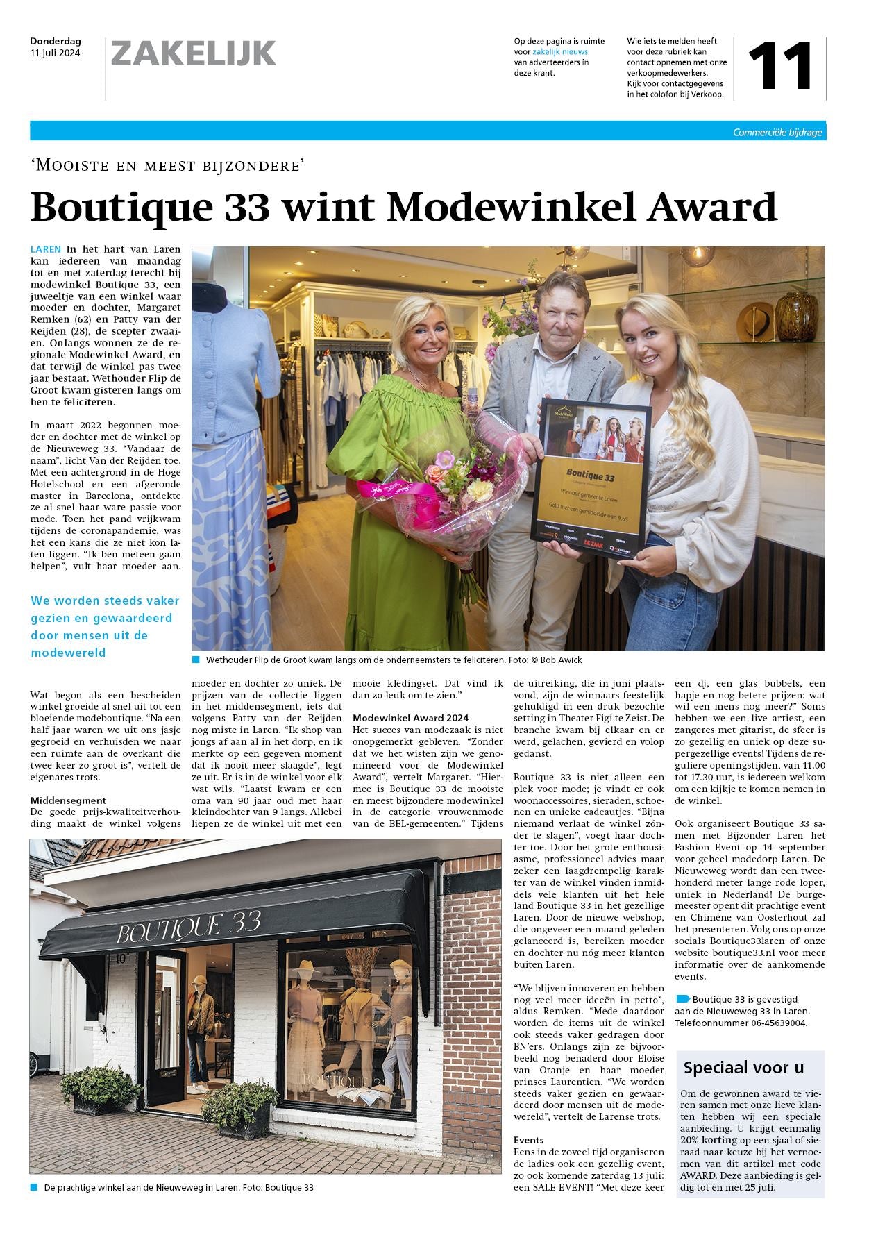 Wij hebben de Modewinkel Award gewonnen van t'Gooi! Mooiste en meest bijzondere winkel, dat is een hele eer!