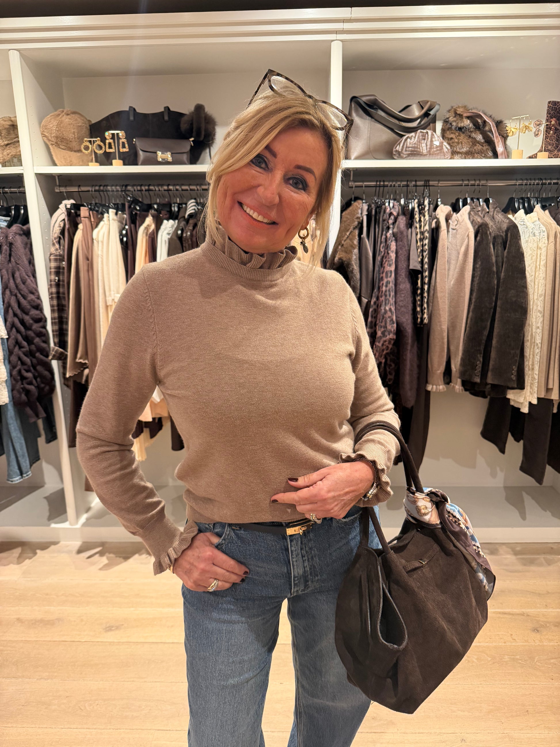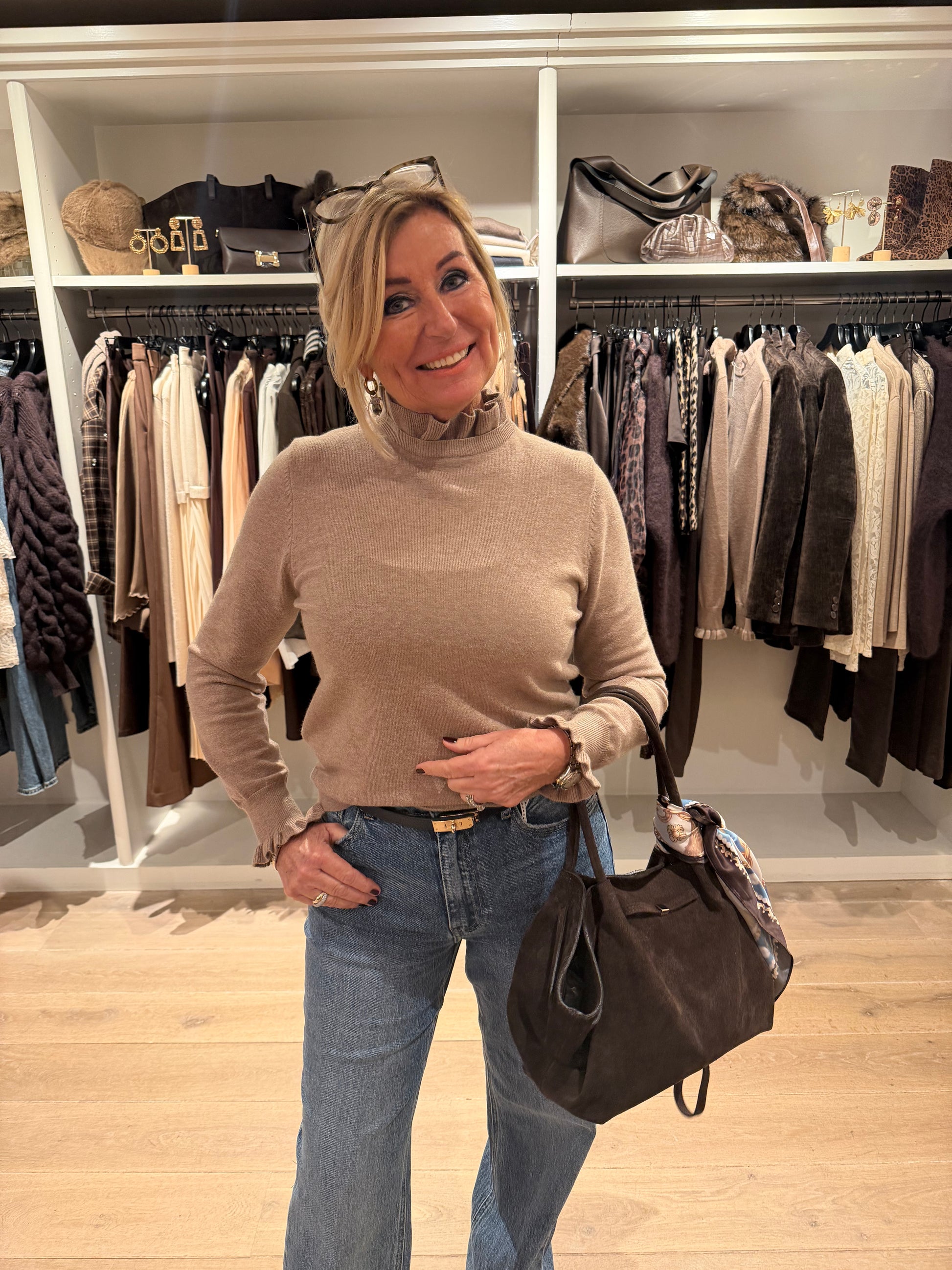 Super leuke coltrui met leuke ruffle mouw en col! One size te dragen tm kleine maat 42.