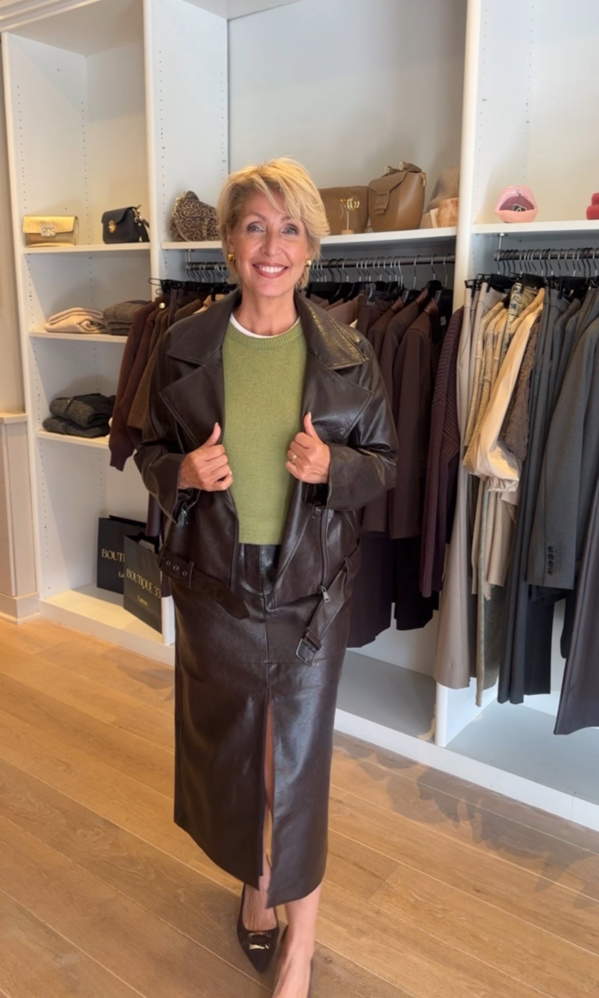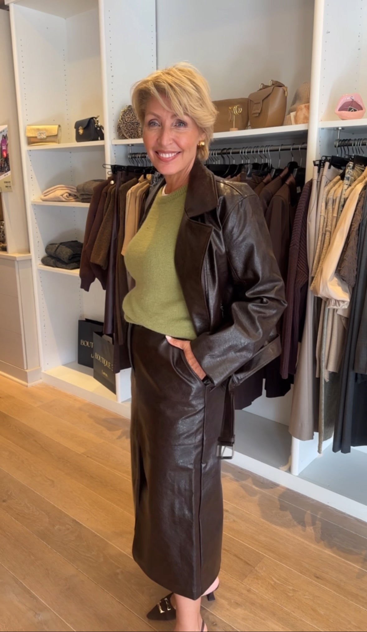 Wat een gaaf jasje! Donkerbruin leer look, super stoer en elegant tegelijk! Maten vallen iets oversized.