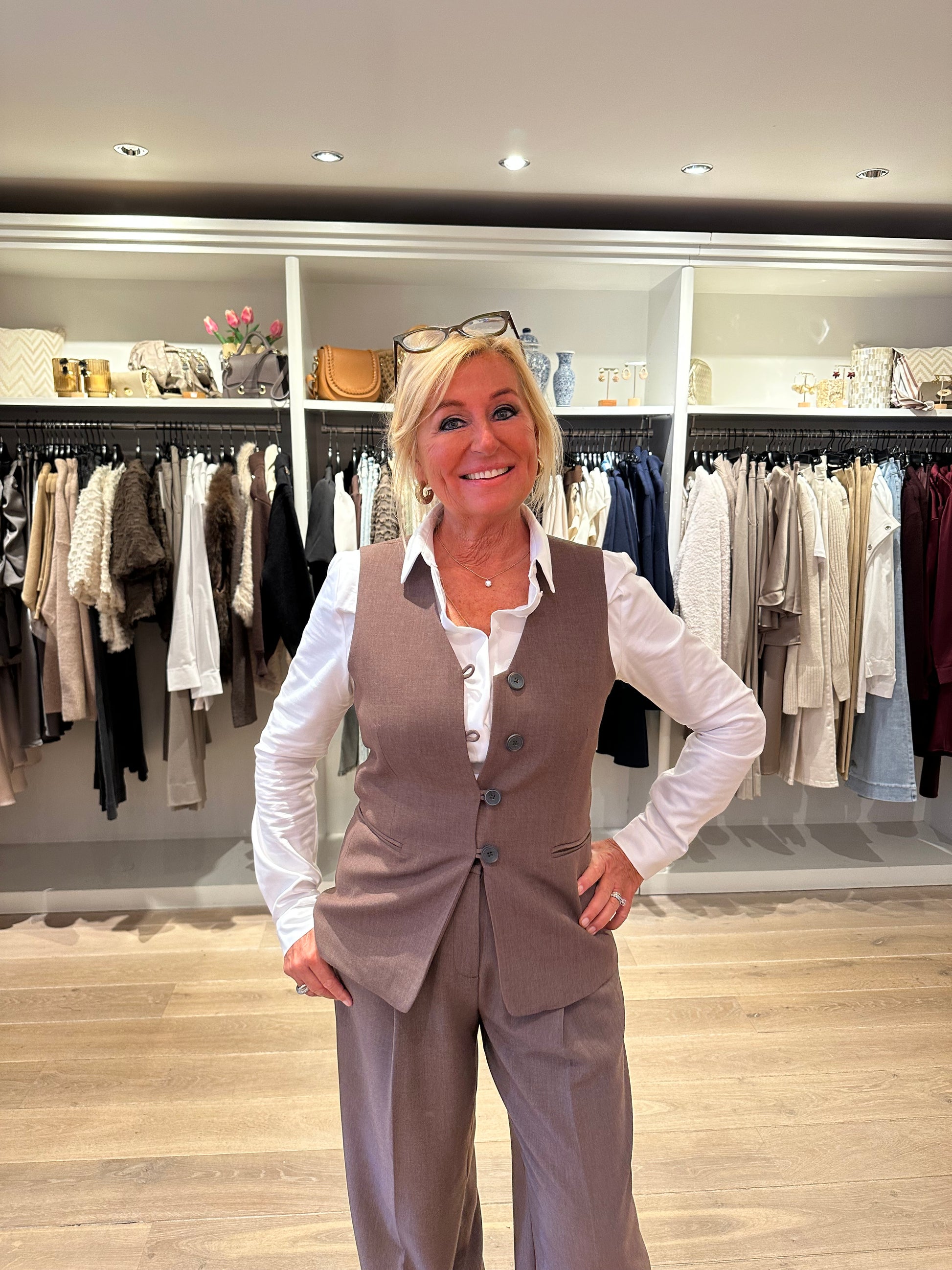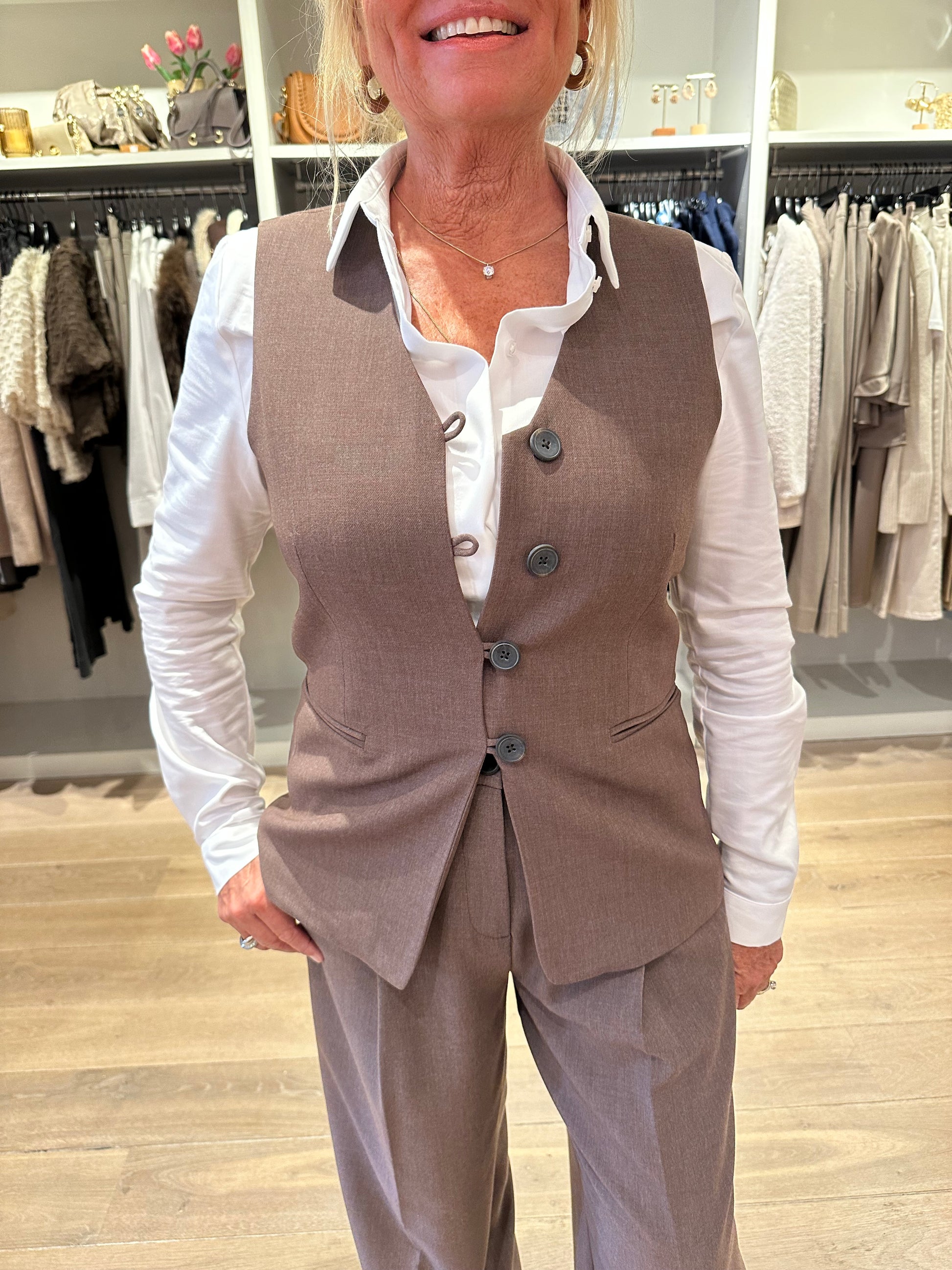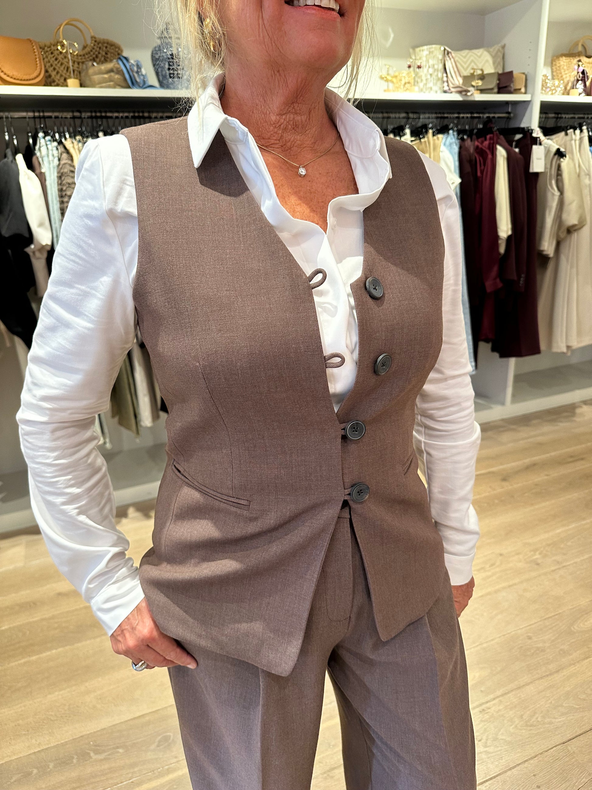 Mooi gilet van MSCH, te combineren met de bijpassende pantalon en blazer. Maten vallen kleiner.