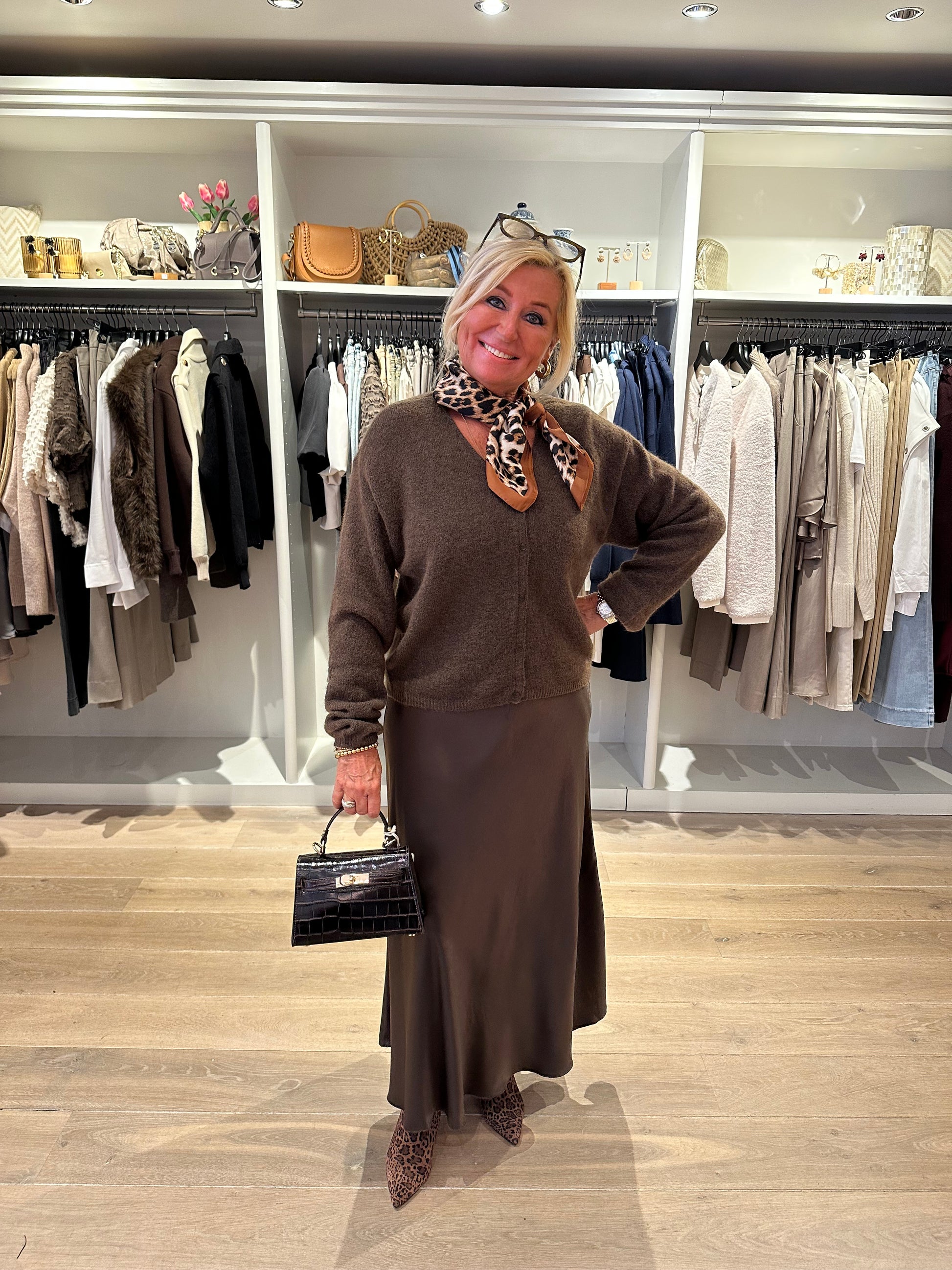 Mooie donker bruine rok van het merk MSCH copenhagen. Mooie glans en valt heel vrouwelijk.
