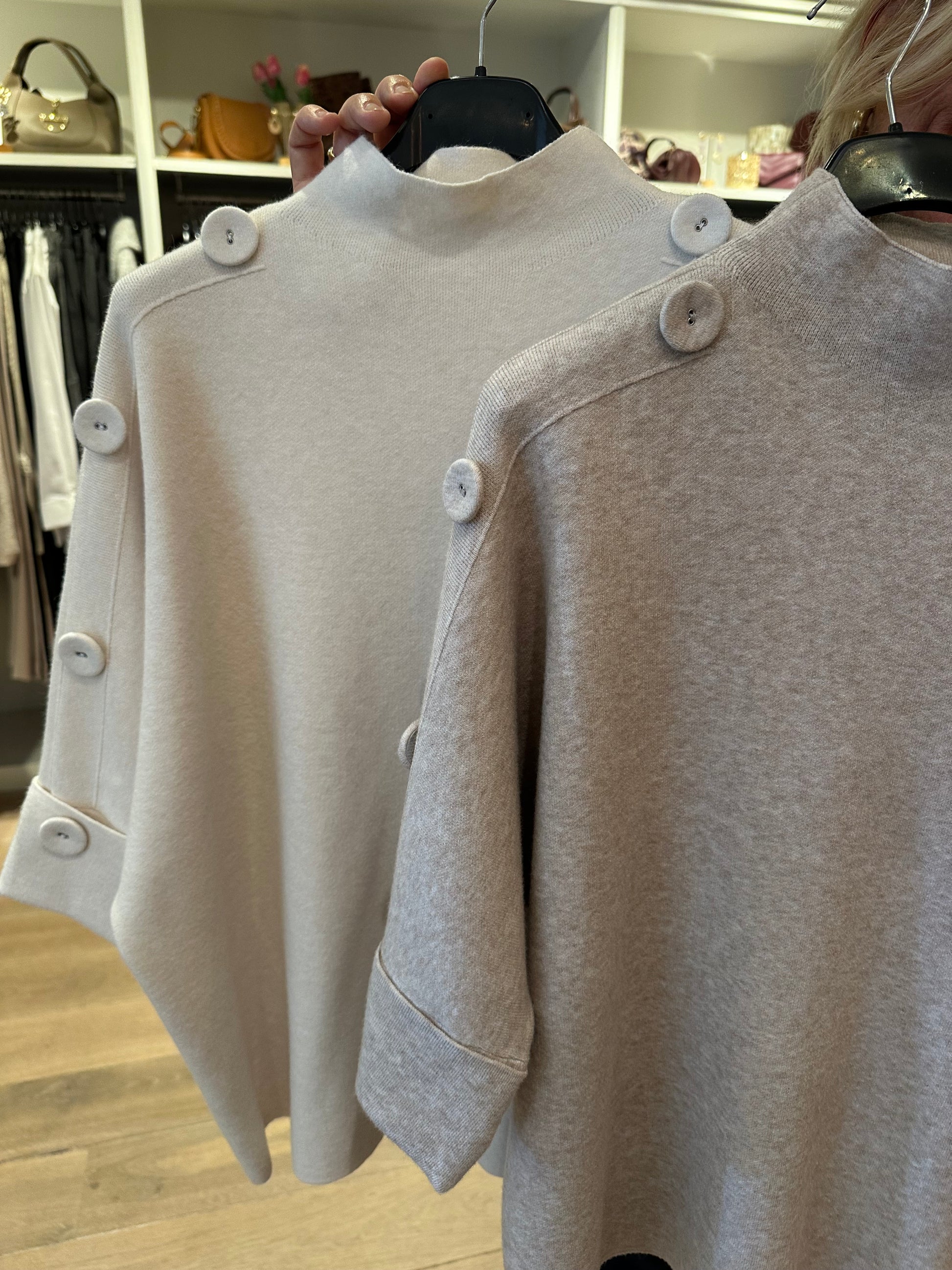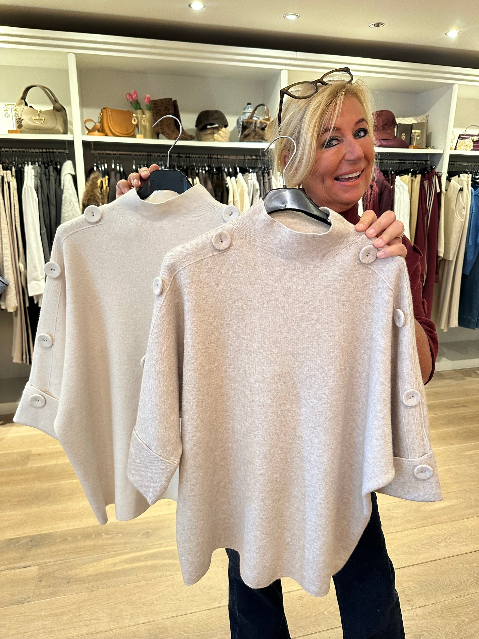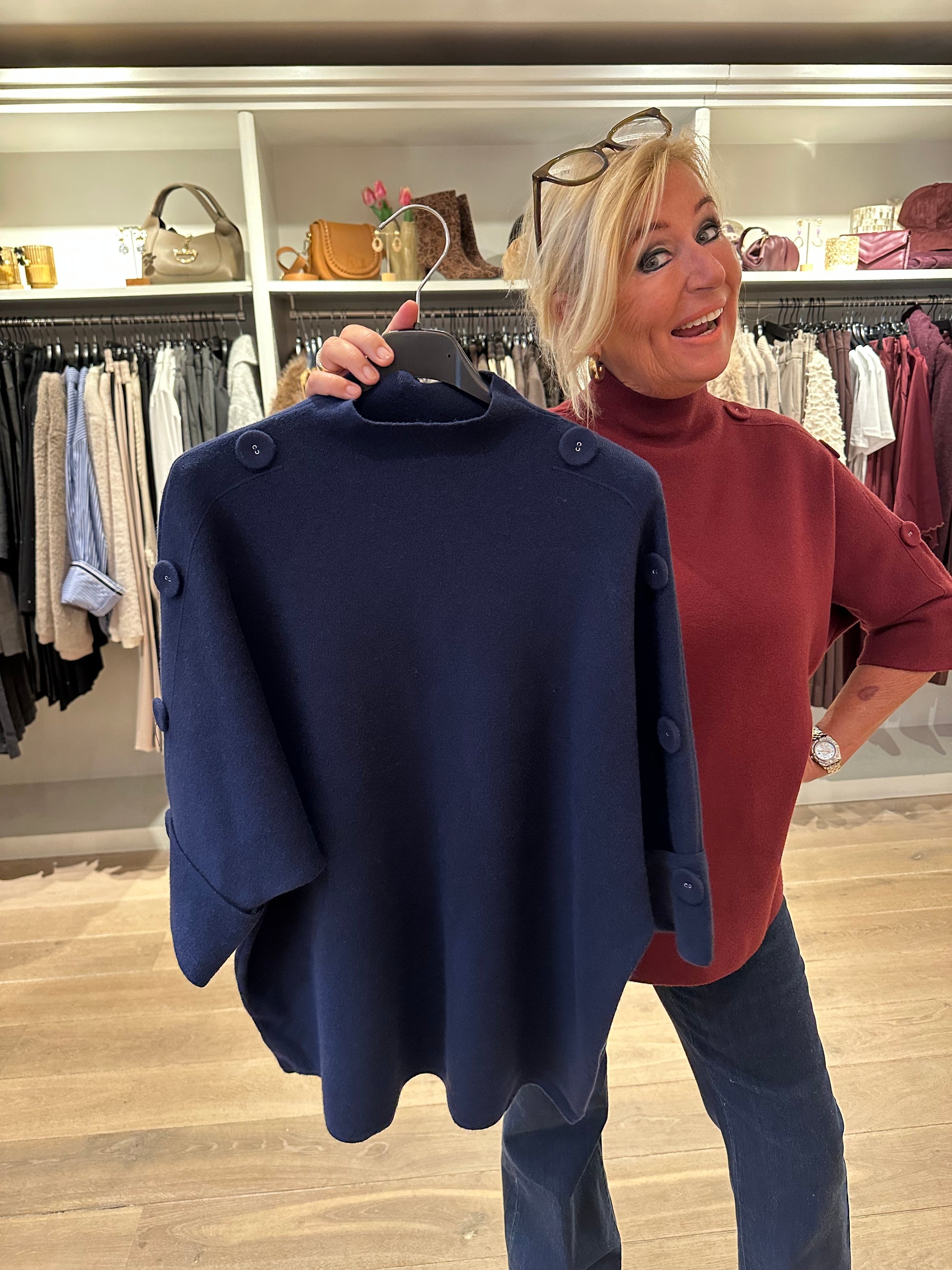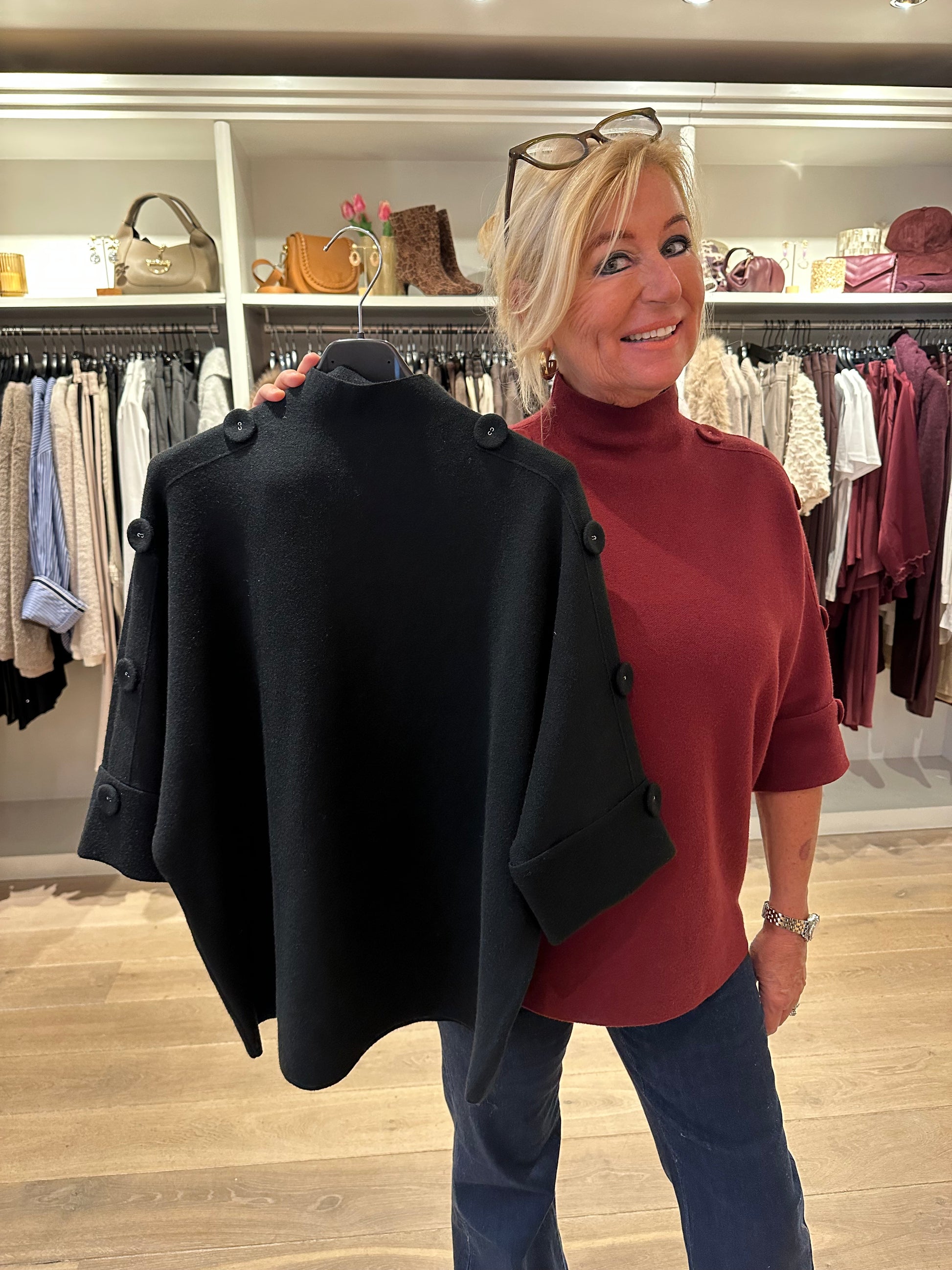Heerlijke zachte viscose trui! Leuke knoop details op de mouw. One size te dragen tm een ruime 42.