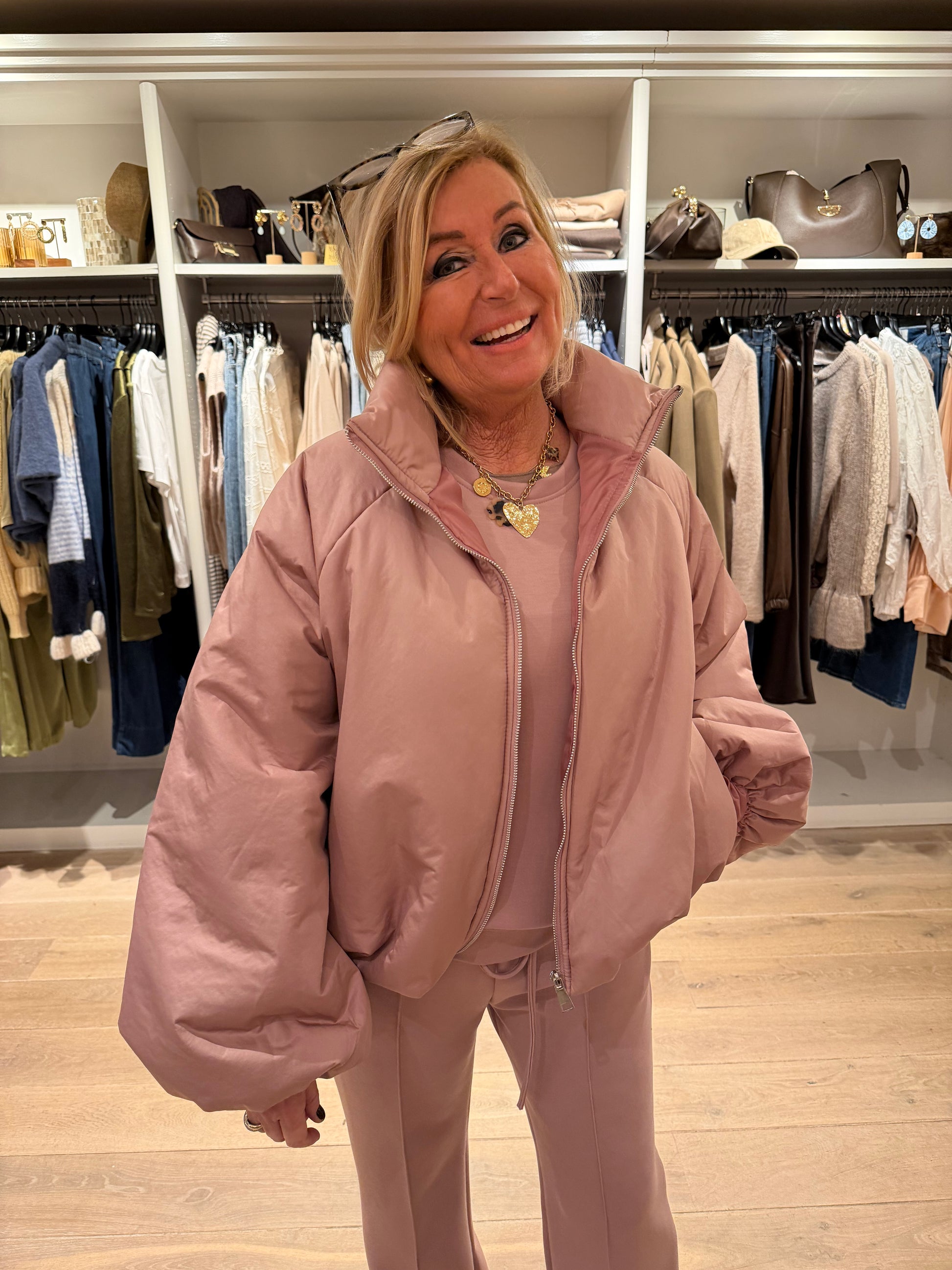 Heerlijk pak in mooie kleur in oud roze. One size te dragen tm maat 40.
